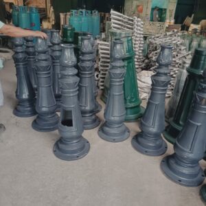 Thân cột đèn trang trí sân vườn DC06 hình trụ tròn, điểm nhấn ở đế gang với kích thước nhỏ dần ở đỉnh.